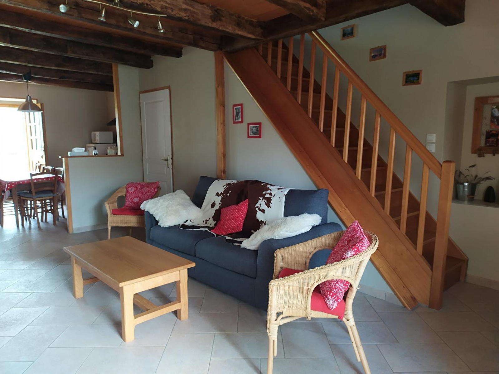 Halfvrijstaand huis, woonkamer met kitchenette, magnetron, slaapbank, boven: slaapkamer 1: 2 eenpersoonsbedden, 1 kinderbed, slaapkamer 2: 1 tweepersoonsbed, 1 eenpersoonsbed, badkamer met douche, elektrische en houtverwarming, terras, omheinde tuin, tuinmeubelen, barbecue. Alle nutsvoorzieningen inbegrepen. Gîte gelegen tegenover de prachtige Romaanse kerk van het dorp. Baby uitrusting beschikbaar.
