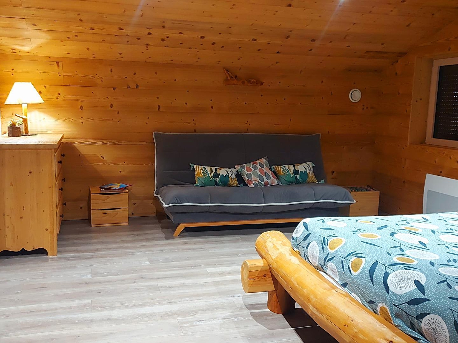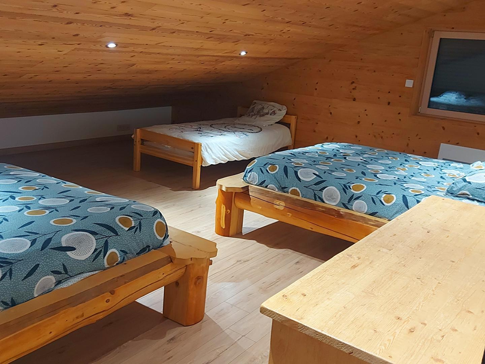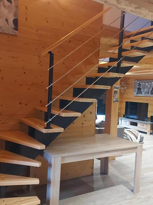 Dit gloednieuwe chalet in de Haut Jura, op een steenworp afstand van het Lac de Coiselet, zal je verleiden met zijn gezellige, opgeruimde inrichting. Het is de ideale plek om wat quality time door te brengen met vrienden of familie. Op de begane grond is er een grote woonkamer met een ingerichte keuken en een zitkamer met een pelletkachel, banken en een flatscreentelevisie. Een grote slaapkamer met 1 x 160cm bed en en-suite badkamer met inloopdouche, bijkeuken met wasmachine en apart toilet. Boven een slaapkamer met 2 x 160 cm bedden en nog een slaapkamer met 2 eenpersoonsbedden en 1 x 160 cm bed, doucheruimte met inloopdouche en WC. Buiten is er een mooi terras met tuinmeubelen en barbecue. Let op: airconditioning alleen in de woonkamer