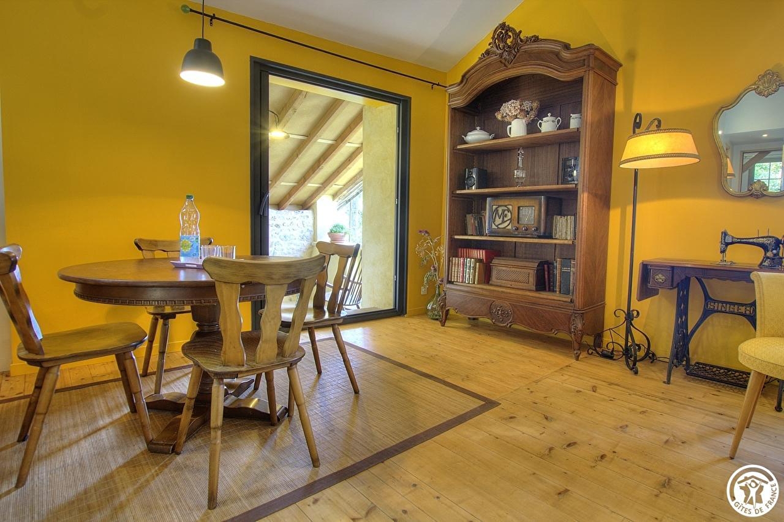 Voor het winterseizoen ligt Giron op ongeveer 6 km afstand, en afhankelijk van het seizoen een waar paradijs voor langlaufers en sneeuwschoenwandelaars. Op een hoogte van 1000 m zijn er kilometers aan loipes voor iedereen. Geniet na dagen vol activiteiten van de 4-persoons gîte met zijn verschillende ruimtes en niveaus. En als je op zoek bent naar gezelligheid bij de houtkachel, kruip dan lekker op de bank met een goed boek. Een nordic bad is beschikbaar op aanvraag (WE 40€). Begane grond: hal met uitklapbed en wasmachinehoek. De ingerichte keuken geeft uit op de woonkamer en de zithoek. Een paar treden lager: salon, woonkamer en overdekt terras met een prachtig uitzicht op het dorp beneden,