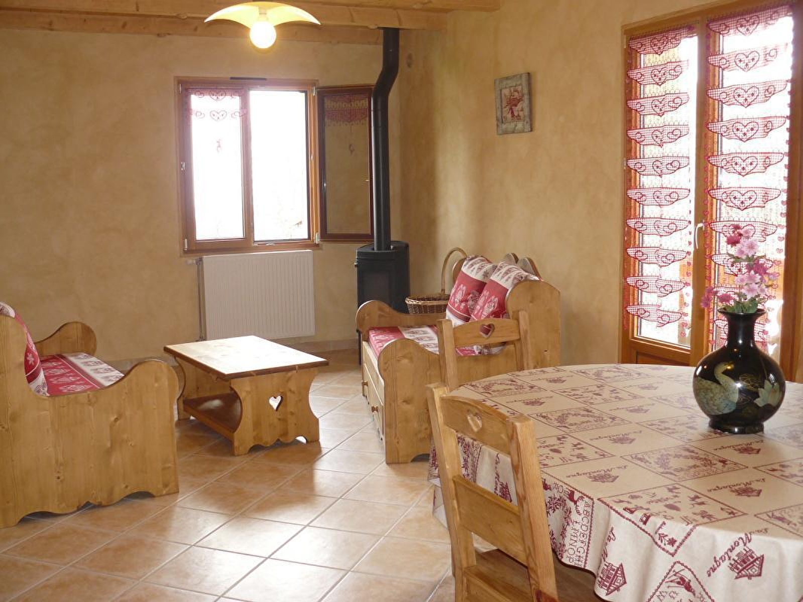 Deze oude boerderij in het hart van het dorp is volledig gerenoveerd en bestaat uit verschillende gîtes. Op de begane grond, berging voor ski's en fietsen. De gîte is op de 1e verdieping met: volledig uitgeruste keuken die uitkomt op de woonkamer (pelletkachel), CH1: 1 tweepersoonsbed, CH2: 3 eenpersoonsbedden, doucheruimte met multi-jet douche (haardroger), verlichting en geïntegreerde radio, aparte wc. Balkon met tuinmeubilair. Omheinde aangrenzende tuin gedeeld met de andere gîtes, tuinmeubelen en barbecue. Intercom en digicode. GRATIS BEVEILIGDE WIFI-TOEGANG. Pellets gratis beschikbaar.