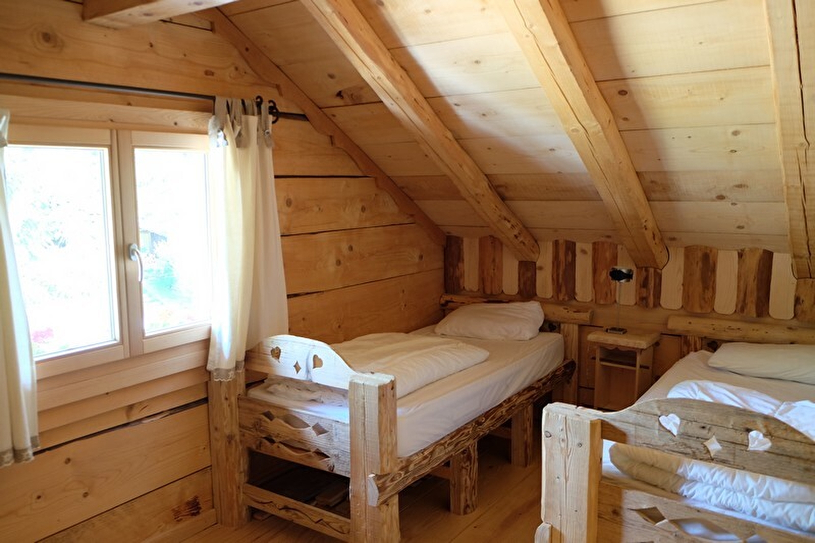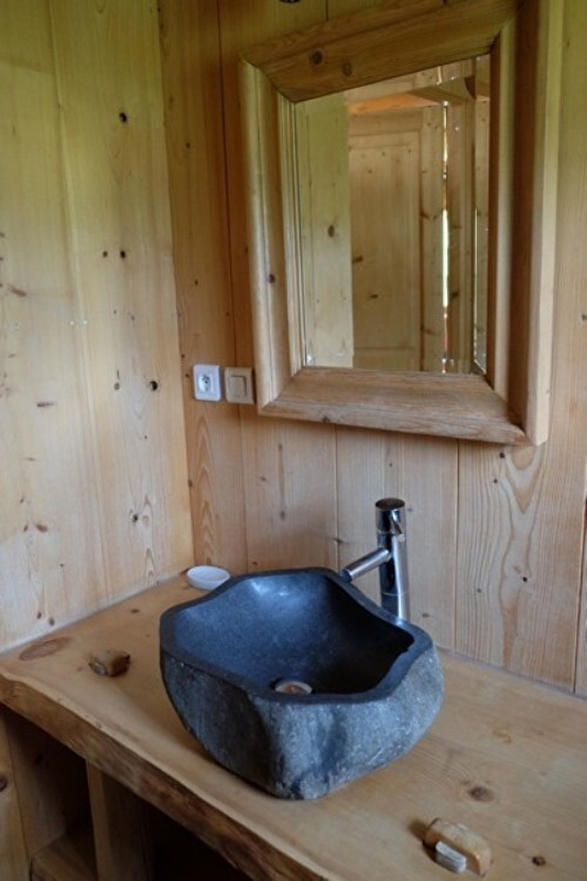 Chalet authentique , indépendant avec vue sur la nature environnante,bénéficiant d'un bon ensoleillement avec au rez de chaussée séjour-salon,coin cuisine aménagée,salle d'eau. A l'étage : CH1: 1 lit 2 places, CH2: 2 lits 1 place.Chauffage électrique au sol, terrain attenant non clos,lecteur DVD,wifi, toutes charges comprises. Location de draps: 9€/la paire.Option ménage: 50€. La décoration stylée montagne fait tout le charme de cet hébergement.Taxe de séjour: 0,50€ par pers/nuit