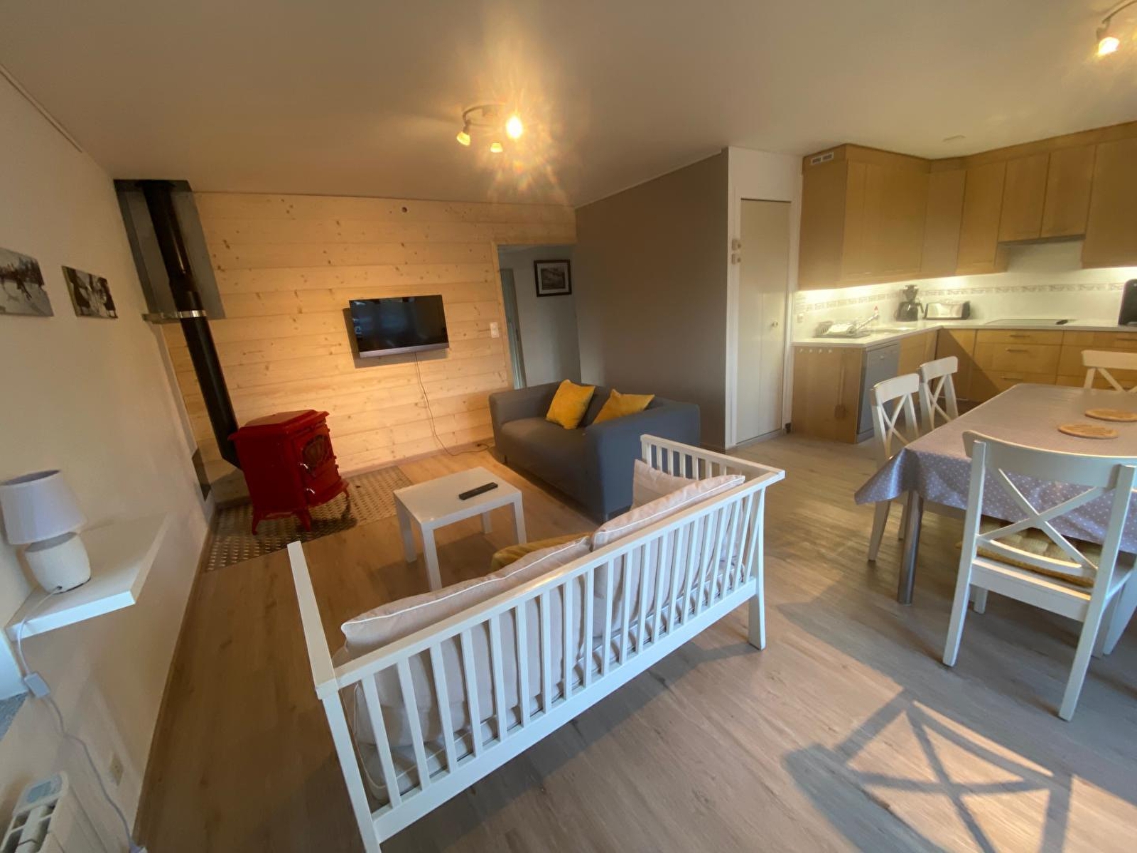Dit appartement bevindt zich op de begane grond van een huis met 1 andere gîte op de eerste verdieping (onafhankelijke ingang) in een rustige omgeving met een panoramisch uitzicht op de bergen, de combes en de bossen. Het bestaat uit een woonkamer met kitchenette, salon met TV, houtkachel, een tweepersoonskamer met 1 bed in 160, 2 slaapkamers met elk 2 eenpersoonsbedden, een badkamer met douche en toilet, een apart toilet. Buiten beschikt u over een terras dat direct toegankelijk is vanuit de woonkamer met tuinmeubelen en barbecue. Ideaal gelegen, met het vertrek vanaf de gîte van de langlaufpistes en wandelpaden, de skipistes op minder dan een kilometer afstand, en niet ver van het zwembad van Morbier, is dit een ideale gîte voor een ontspannende en/of sportieve vakantie. Voor familie of vrienden kunt u de 2 gîtes (G2345 en G2346) huren voor een totale capaciteit van 13 personen.