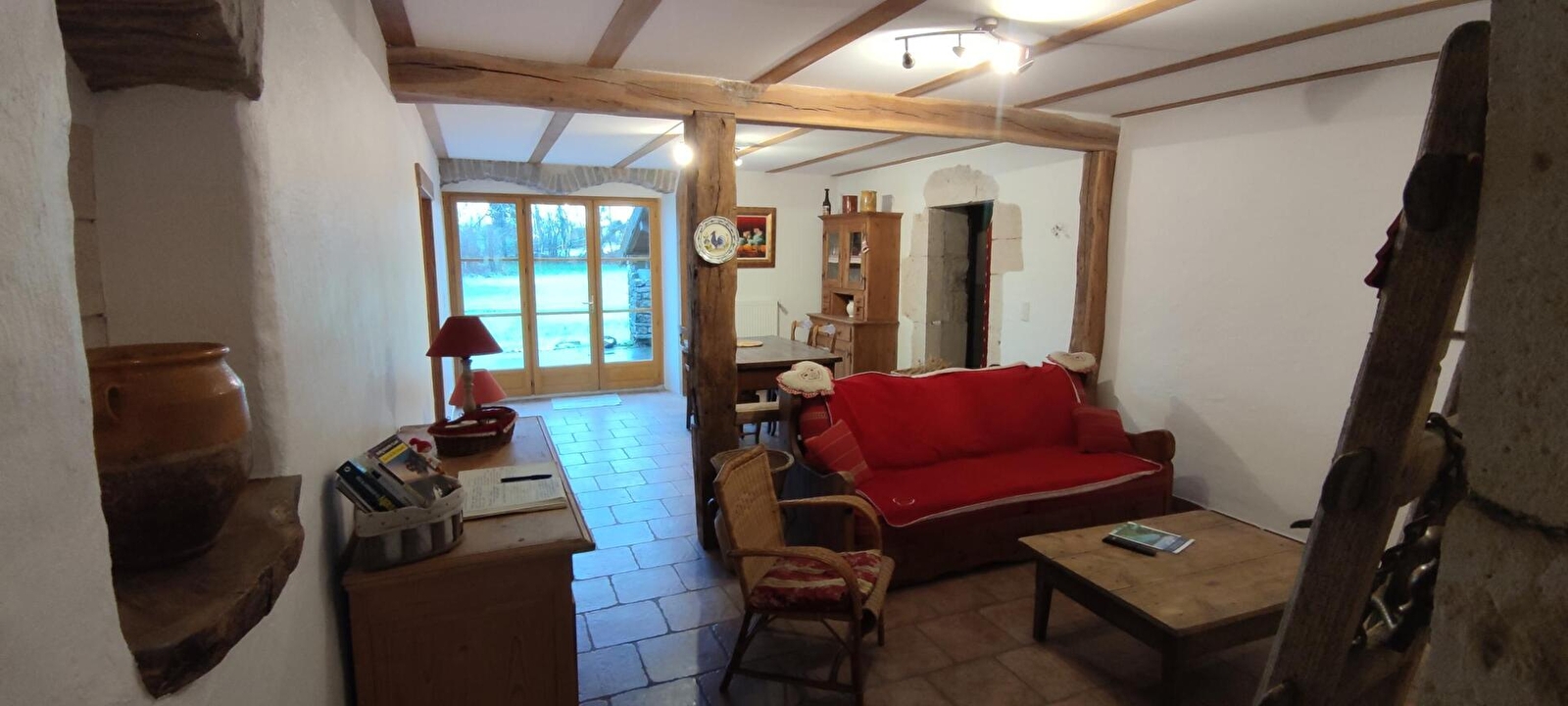 Noodzaak van ruimte, rust, vakantie gewoon in een echt landhuis gerestaureerd in een authentieke stijl om deze mooie en oude boerderij te behouden en te respecteren. Begane grond: keuken, eethoek, aparte woonkamer, badkamer, aparte wc. Op de vloer: een kamer (1 bed 2 plaatsen en 1 bed 1 plaats). Mooi omheind aangrenzend terrein met overdekt schuilplaats, tuinmeubelen en barbecue. Veel wandelpaden vanuit het huisje.