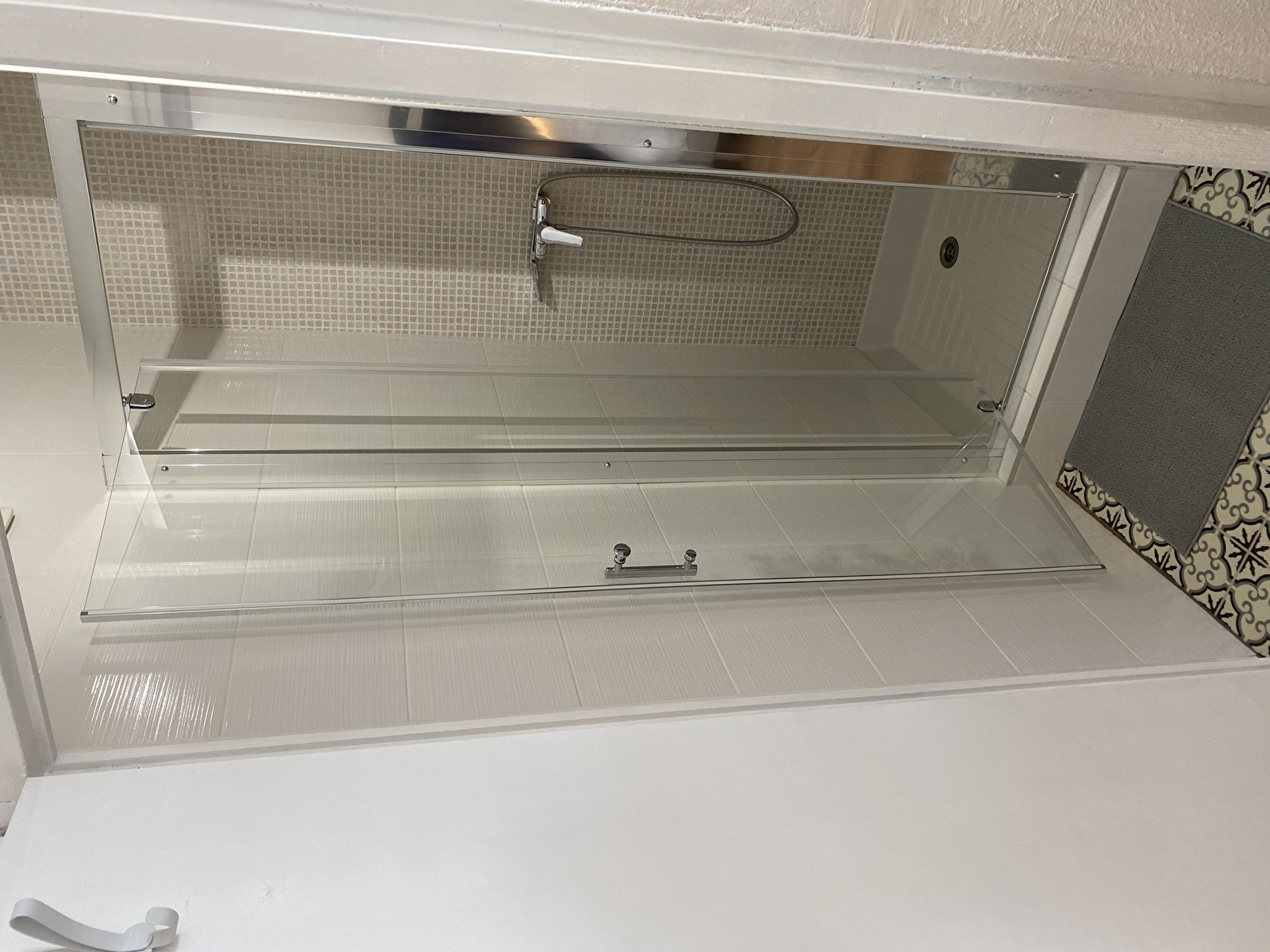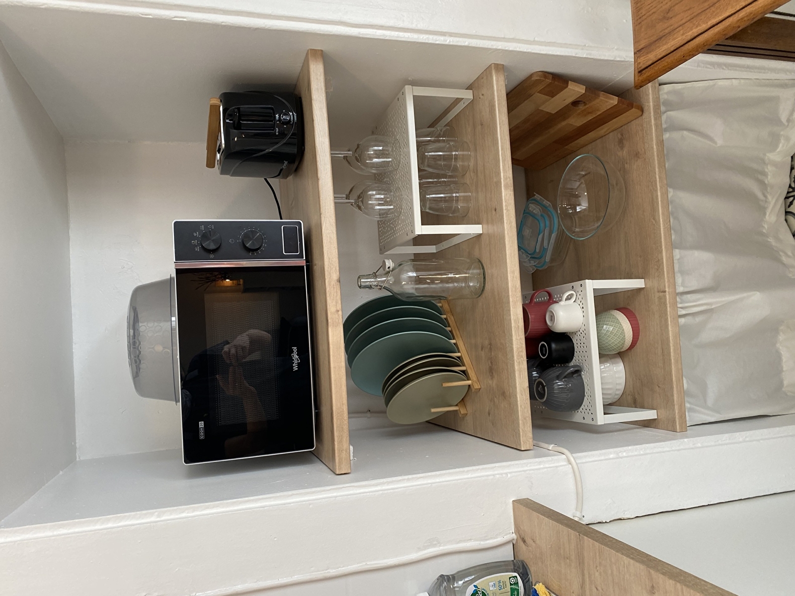Het bestaat uit een woonkamer, keuken, slaapgedeelte en doucheruimte.