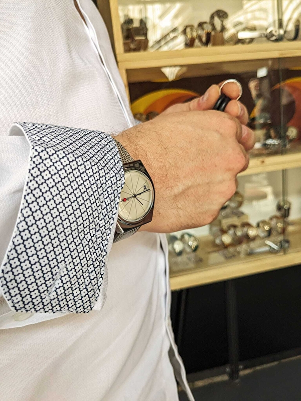 Naast reparaties onderscheidt de werkplaats zich door zijn innovatieve benadering van design. De vakman ontwikkelt zijn eigen merk, Thomas Karbiche, gebaseerd op het concept van upcycling van horloges, waarbij oude onderdelen worden getransformeerd tot unieke hedendaagse stukken.