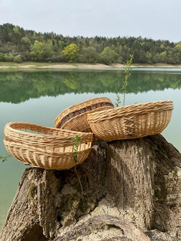Magali, een mandenvlechtster, weeft riet met passie in haar atelier op het Terre d'Emeraude in de buurt van de stuwdam van Vouglans, waar ze voorouderlijke vaardigheden weer tot leven brengt in de vorm van nuttige en/of decoratieve alledaagse voorwerpen, unieke stukken die met veel geduld en poëzie met de hand zijn gemaakt.