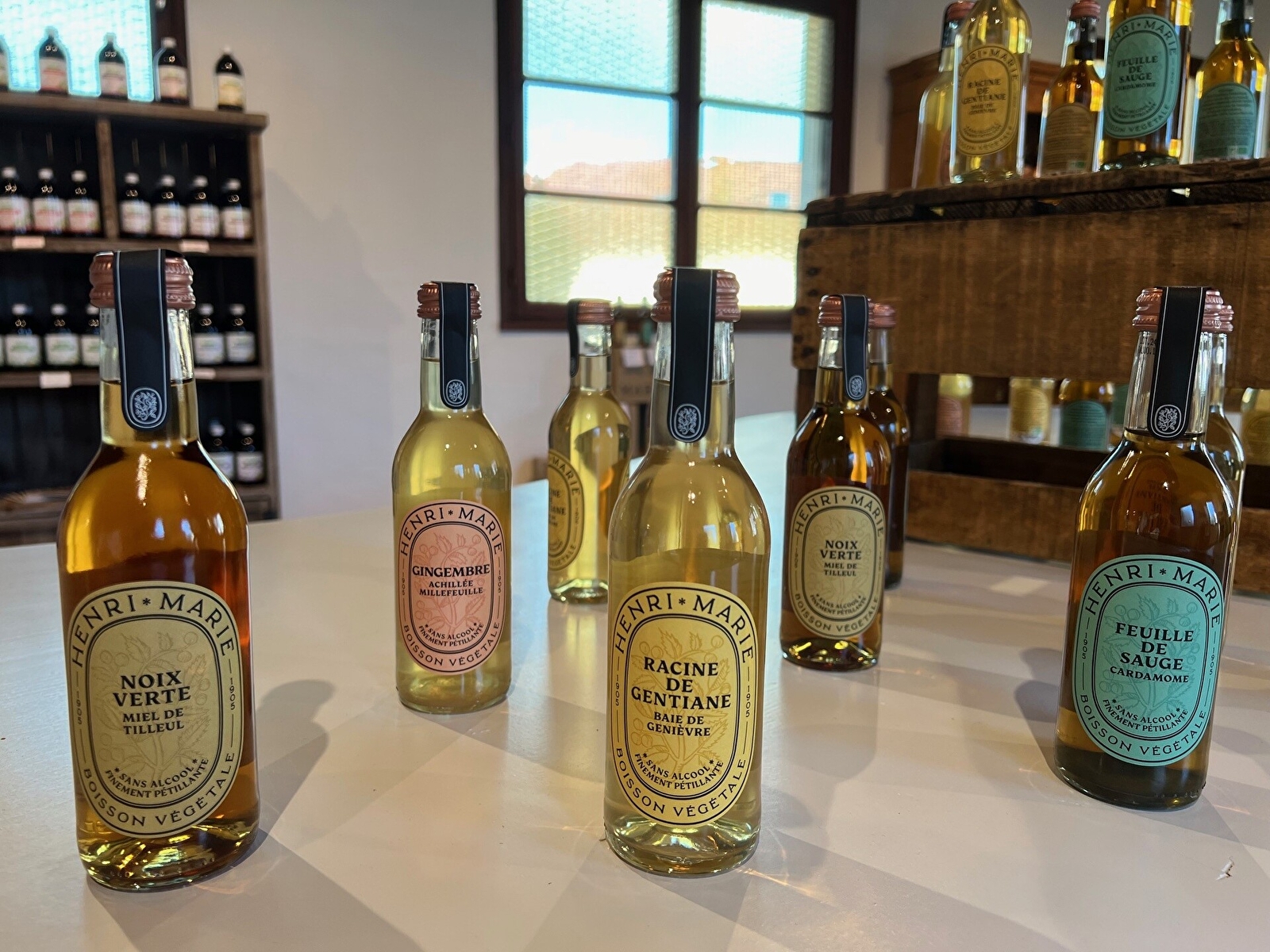 Na je bezoek is het tijd om te proeven en te genieten van een breed scala aan plantaardige dranken: de beroemde KARIO, een drank gemaakt met 32 planten, de alcoholische versie, KYLON (23°), de groene en gele STELLINA digestieve likeur, de Marc du Bugey (30 jaar) gerijpt in vaten met een ongeëvenaarde finesse, en de nieuwste toevoeging, Holypop, de biologische frisdrank beschikbaar in een reeks van 7 smaken ...