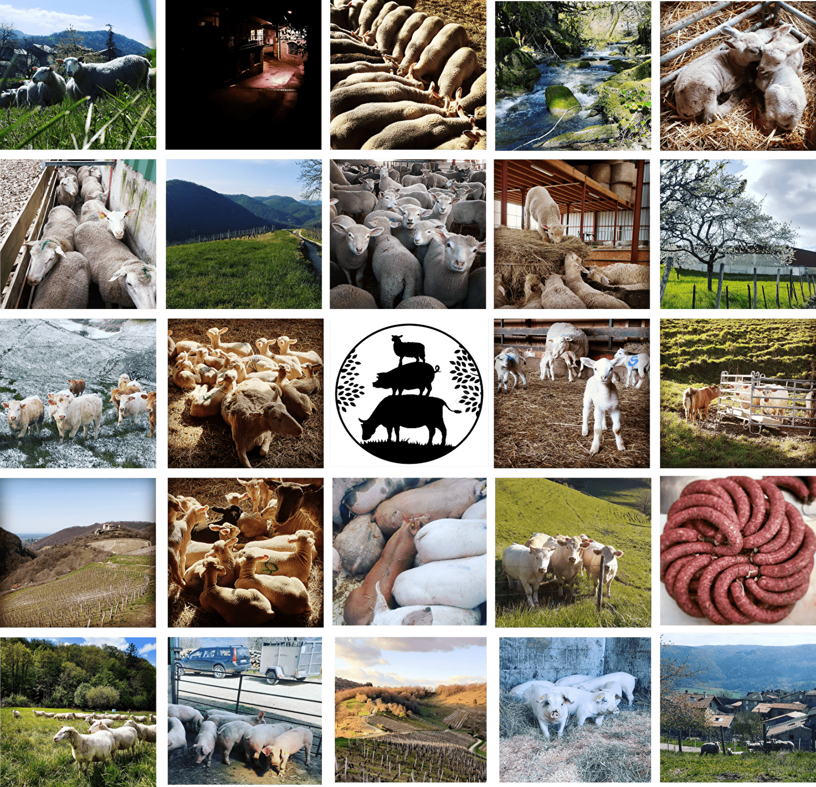 Onze productie wordt uitsluitend via directe verkoop en zeer korte circuits op de markt gebracht. De producten reizen maximaal 90 km van onze velden naar uw bord! Dit maakt deel uit van onze militante aanpak ten gunste van een verantwoorde landbouw die dicht bij de consument staat. We zijn er trots op dat we kwaliteitsvoedsel leveren, lokaal geproduceerd. Rundvlees in het proces van omschakeling naar AB (met alle weilanden), scharrelvarken en lamsvlees gevoed met hooi van onze weilanden en graan gegarandeerd zonder GGO's.