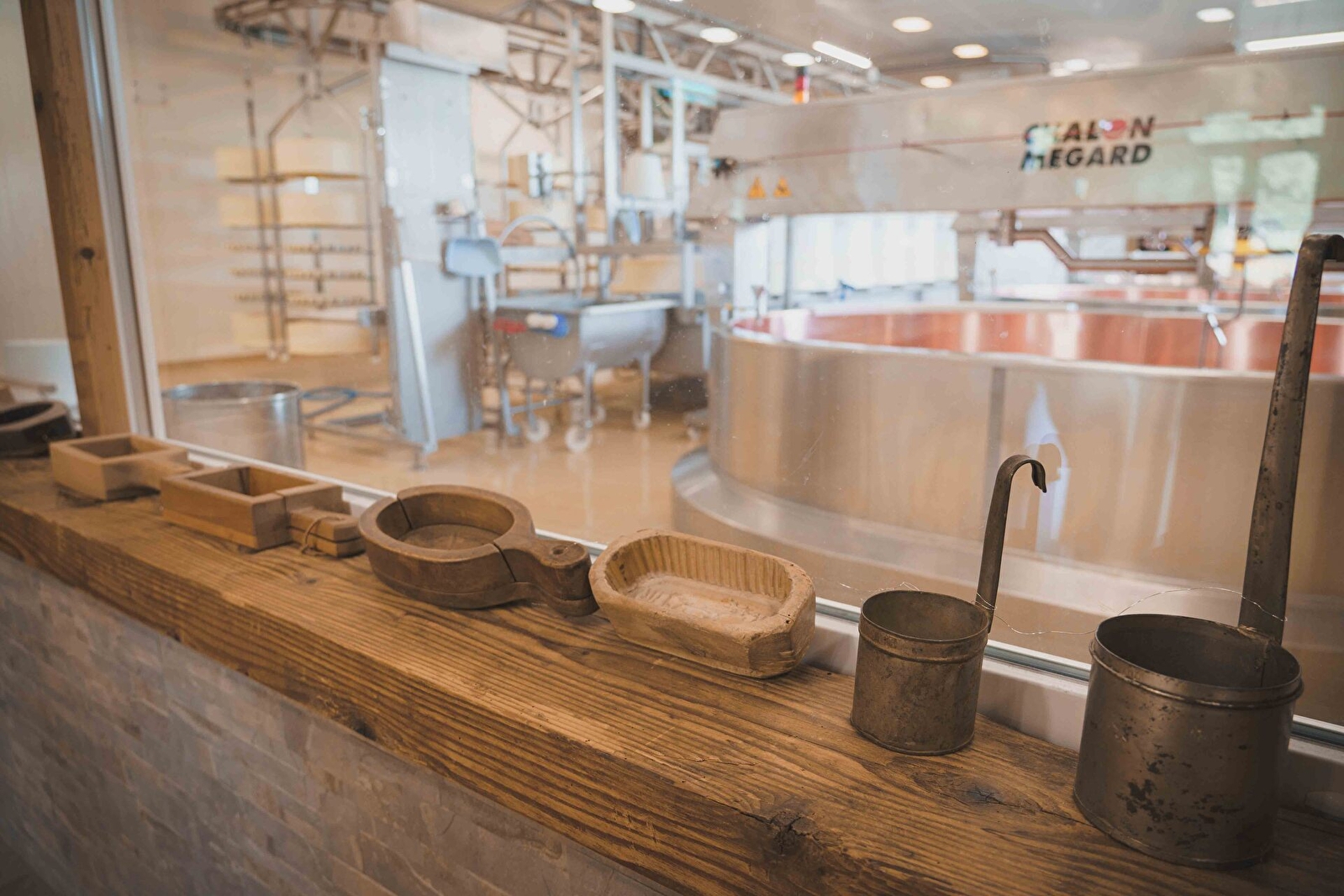 Door de grote ramen kun je de kaasmaker aan het werk zien en ook een deel van de voorrijpingskelders.