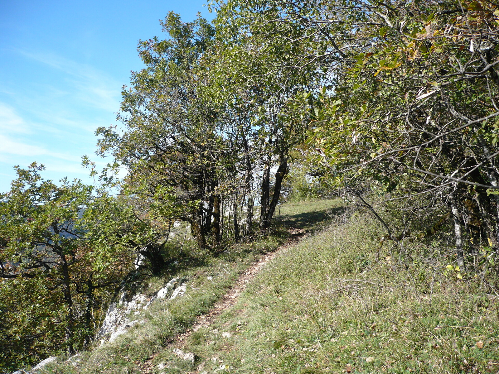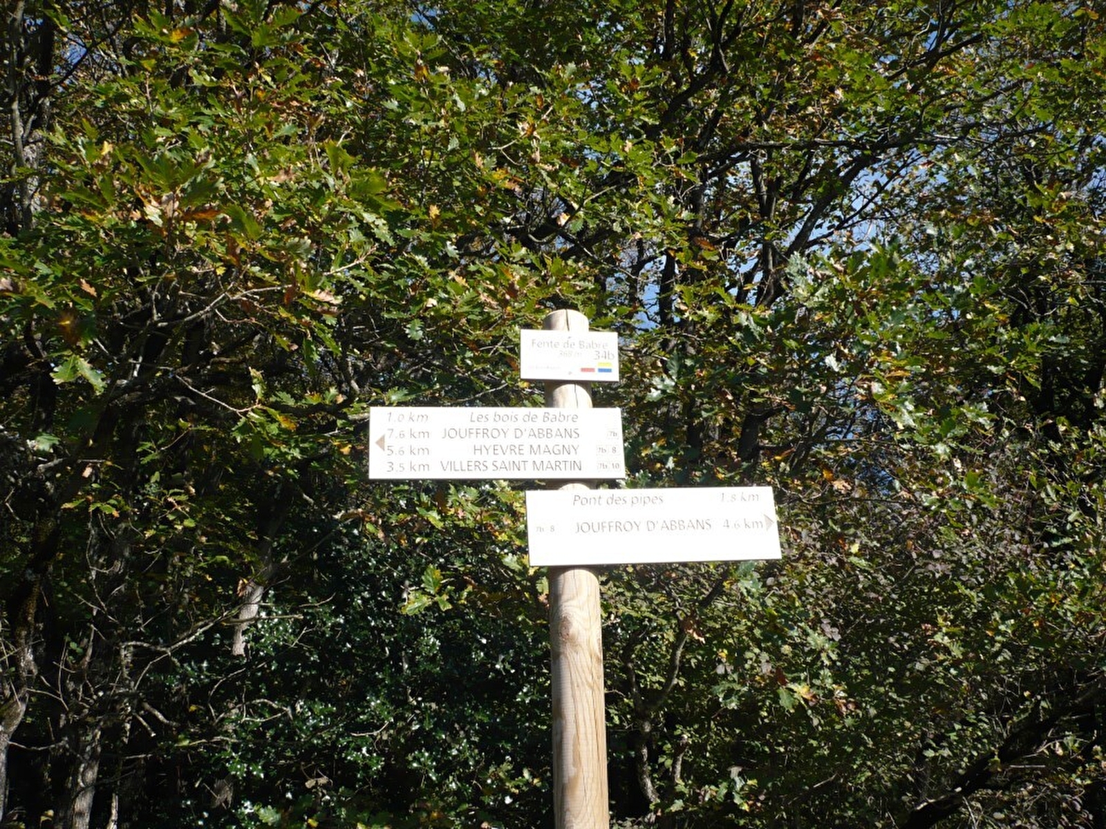 Neem het grindpad links en volg het tot het de weg kruist. Er is een kleine parkeerplaats en een bord voor "La Fente de Babre". Volg dit bord.