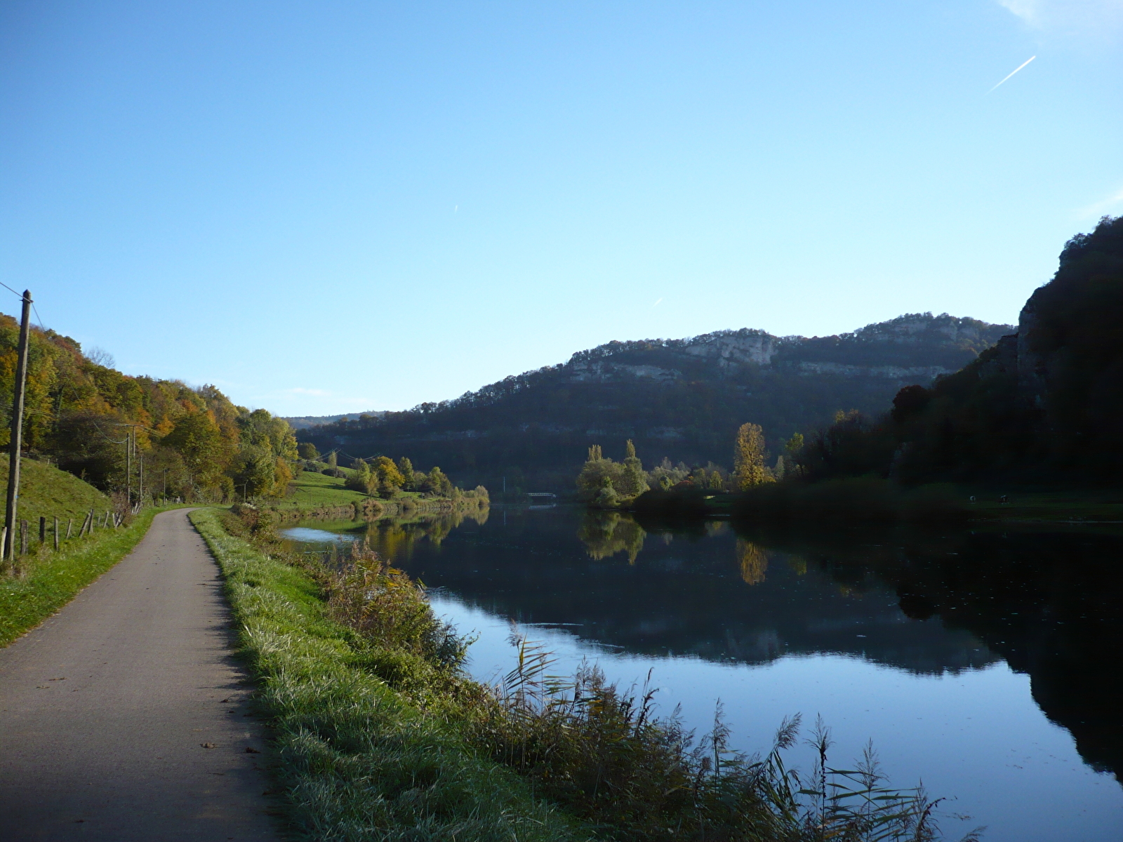 STAP 2: Steek het kanaal over en ga meteen linksaf de fietsroute op richting Montbéliard (het pad loopt onder de blauwe brug door).