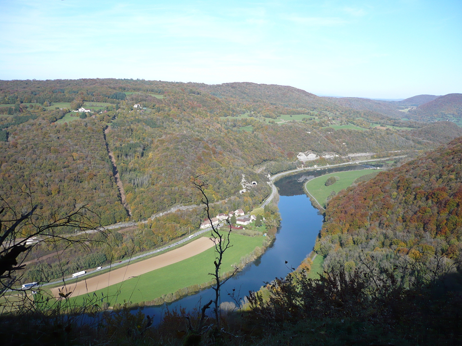 STAP 5: Een beetje verder heb je een mooi uitzicht op de Doubs. Stop bij de stele in het bos van Babre en neem het pad rechts.