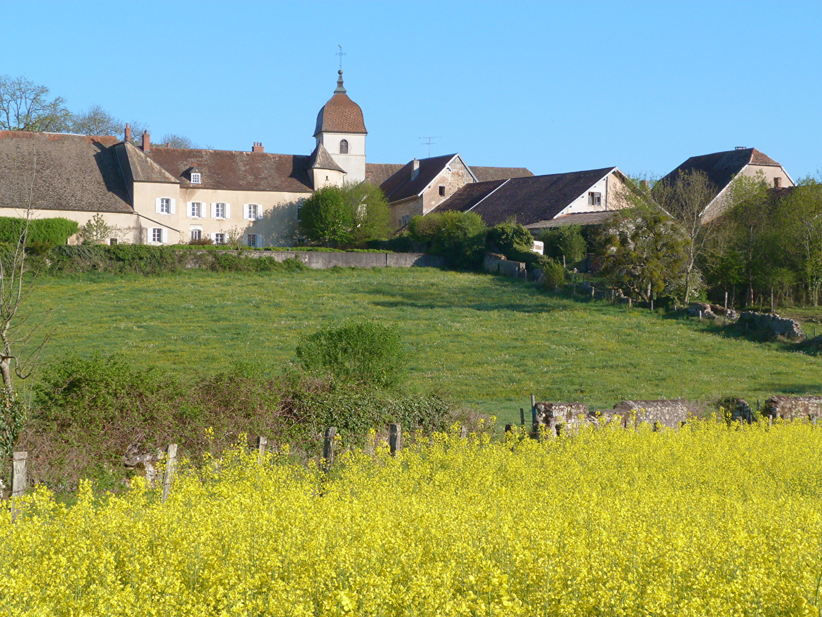 Bereik het dorp Thurey-le-Mont. Net voor de Erhard-fabriek neem je links de Chemin de Combe. Je komt door een bebost gebied dat naar de lager gelegen fontein leidt.