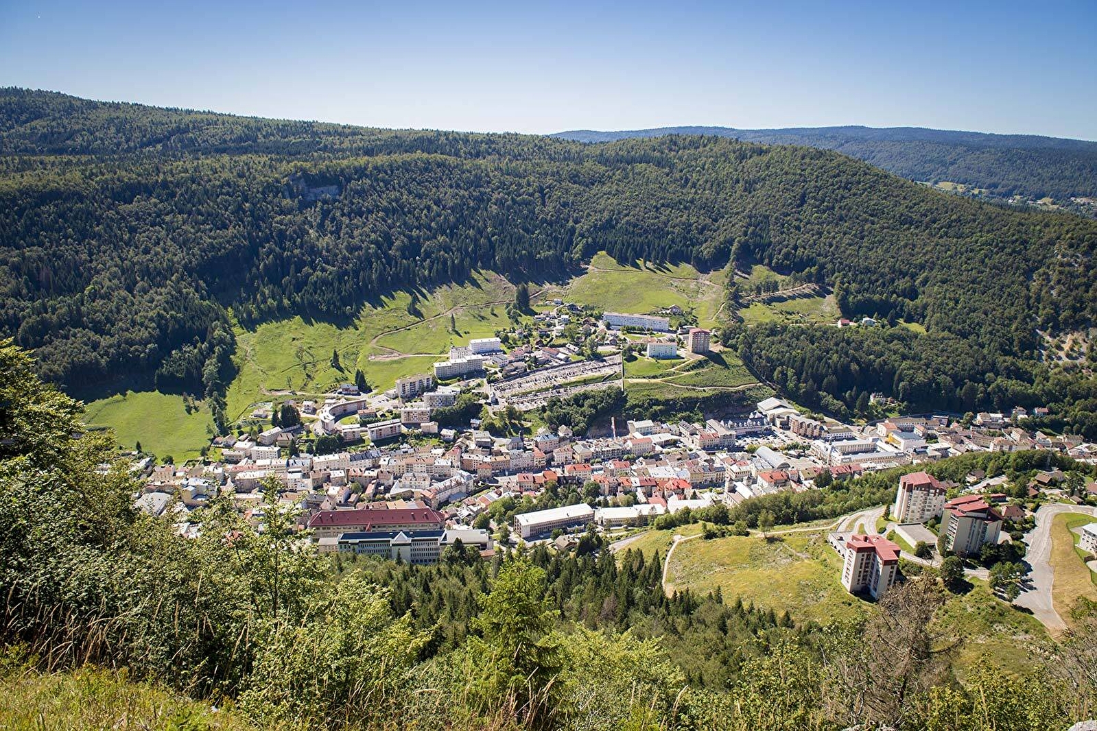 Laat je van uitzichtpunt tot uitzichtpunt verrassen door een opeenvolging van contrasterende panorama's: stedelijke uitzichten genesteld in de Morez cluse, beboste landschappen op de hellingen en grandioze spektakels van combes, bergkammen en bergen, waar ontsnappen zijn volle dimensie krijgt.