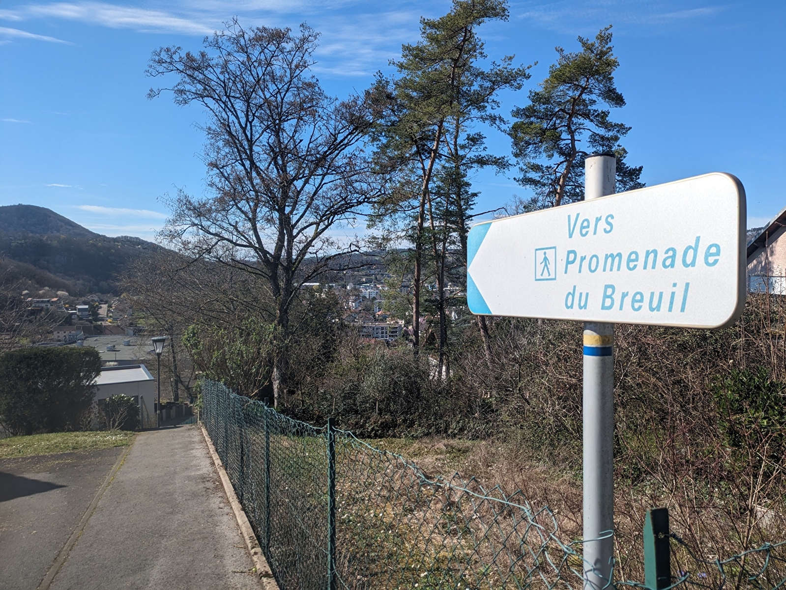 STAP 5 :Verderop aan de linkerkant volg je de borden "Promenade du Breuil". Ga een trap af die overgaat in een vrij steile straat. Na de bocht ga je rechtsaf. Bij de splitsing ga je rechtsaf.