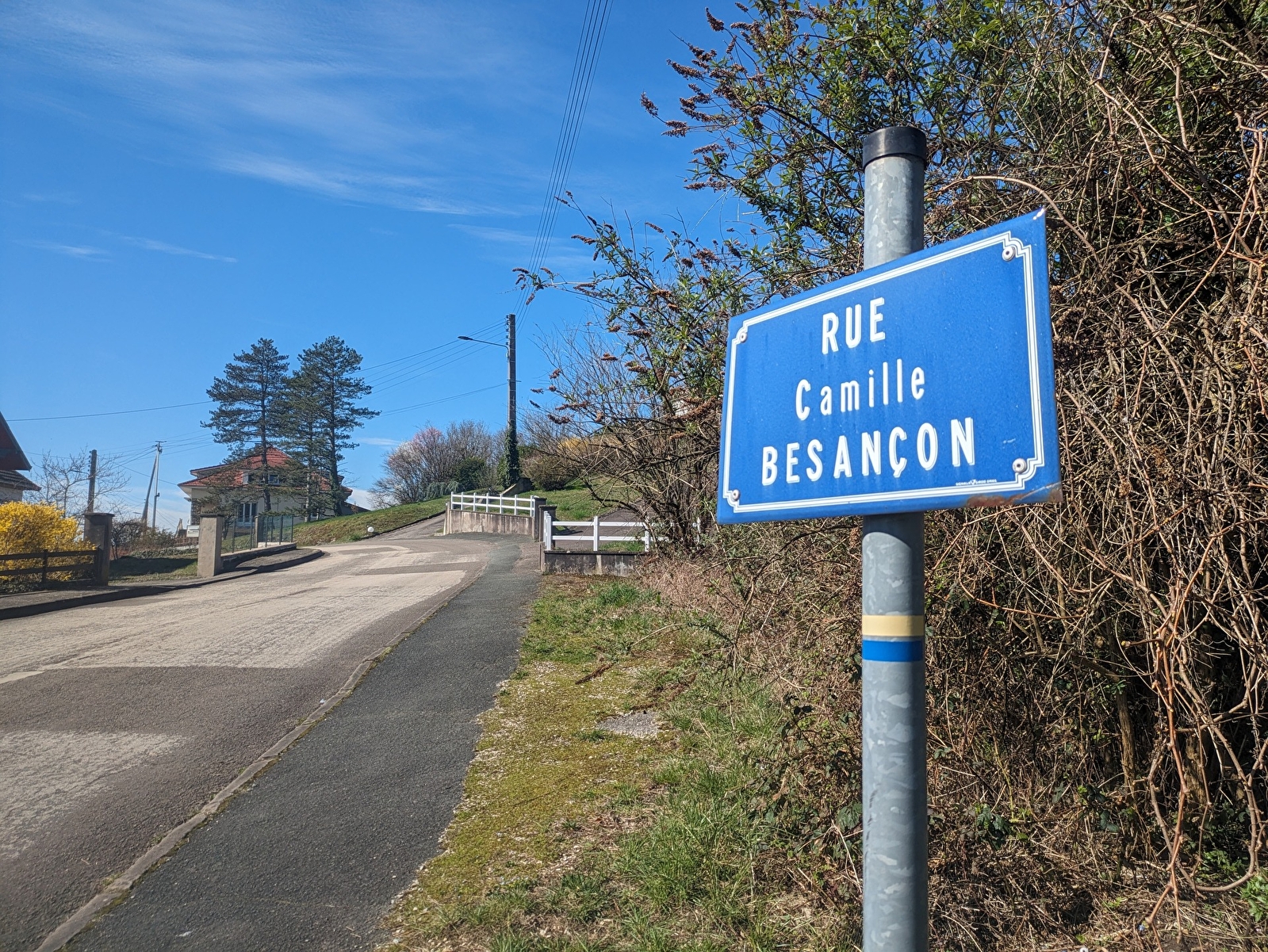 Sla rechtsaf de 3de straat in (rue Camille Besançon). Je kijkt uit over de wijk Cour, dat een onafhankelijk dorp was voordat het een wijk van Baume-les-Dames werd.