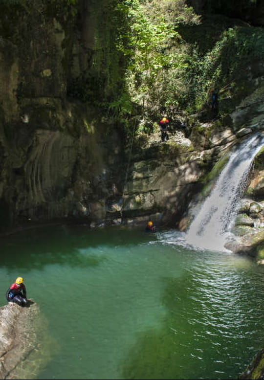 Om canyoning te proberen en met water te spelen in deze natuurlijke omgeving is er maar één voorwaarde: je moet kunnen zwemmen. Canyoning kan van april tot oktober worden beoefend, naar gelang het weer. Het is een vrij spectaculaire en intense sport, maar compleet toegankelijk vanaf 7 jaar. Hier kun je zorgeloos het water in duiken: de instructeurs kennen het berggebied als geen ander en kunnen het waterniveau inschatten (net als je conditie trouwens) om je een activiteit te bieden op maat.