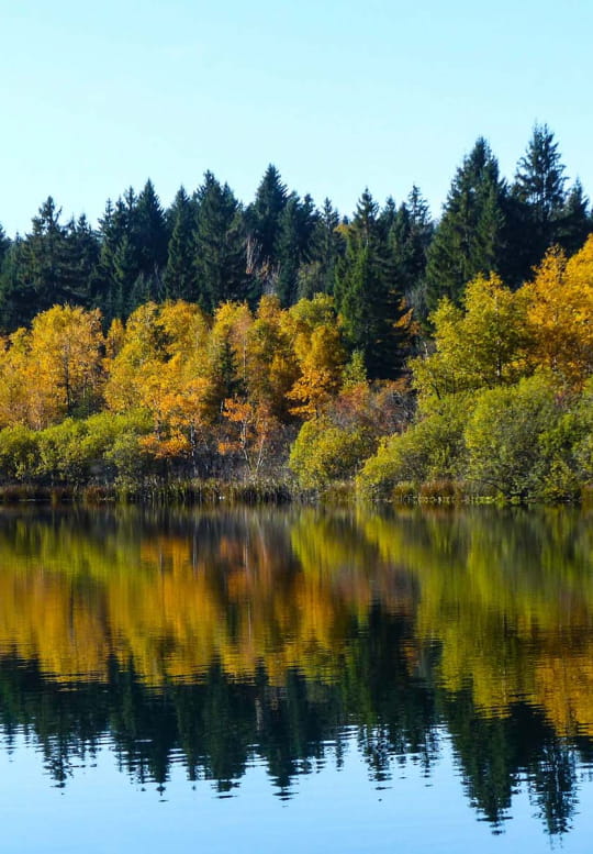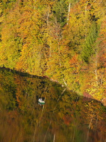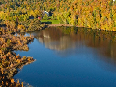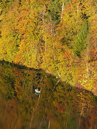 In elk seizoen weerspiegelt het decor op het water van het Lac de Bonlieu: 's Winters is dat de witte sneeuw en 's zomers is dat uiteraard groen, in allerlei tinten. In het najaar is het een uitbarsting van geel en oranje. En elke keer is het weer een bijzonder spektakel!