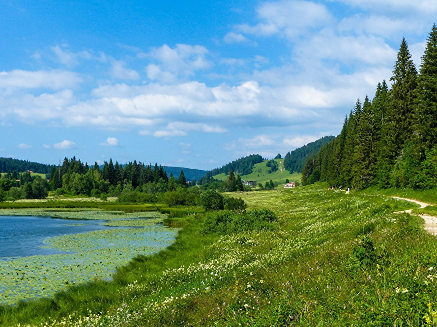 Zin in natuur en rust? Dan vind je wat je zoekt bij het Lac de Lamoura. Leg je handdoekje neer op het strandje (met toezicht) en geniet van een uniek uitzicht dat je niet aan zee vindt. In plaats van oneindig water zonder reliëf of kleuren ligt hier links een veengebied en rechts een typisch sparrenbos uit de Jura... En wat verder aan de horizon zie je vlaktes vol met wilde orchideeën.