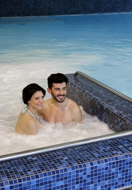 Op het programma: verschillende wellnessbehandelingen en massages, een Sparuimte en thermale baden met water op 37° C. Genoeg om stress, rugpijn en andere zorgen te laten varen.