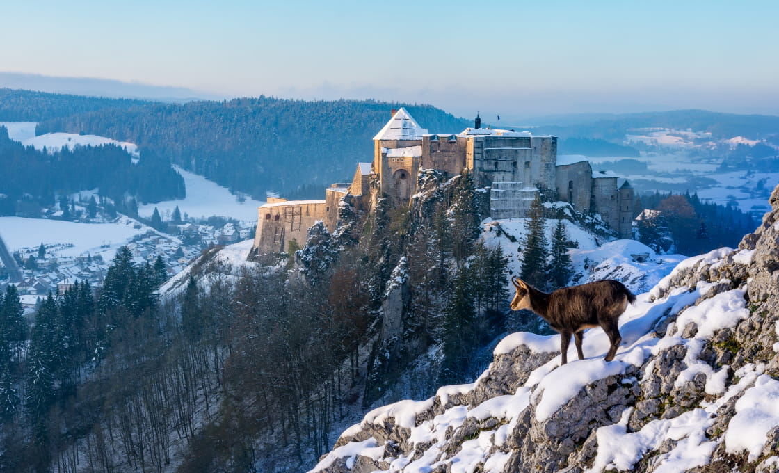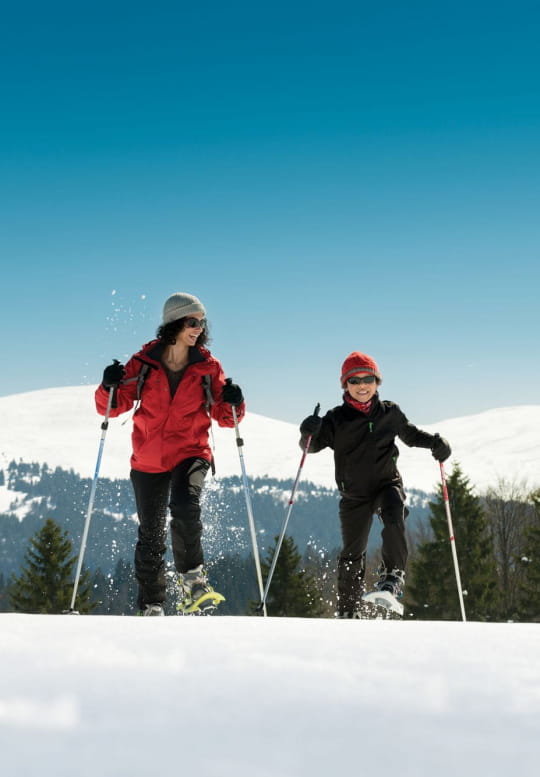 58 km aan sneeuwschoenwandelpaden lopen langs dorpen en huizen. Tijdens een toerskitocht klim je op kuitenkracht tot aan de top van de Mont-d’Or.