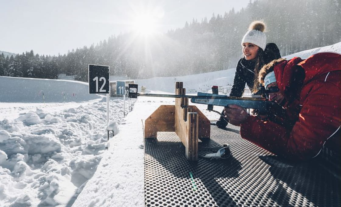 Hierbij wordt cross-country of rolskiën gecombineerd met schieten.