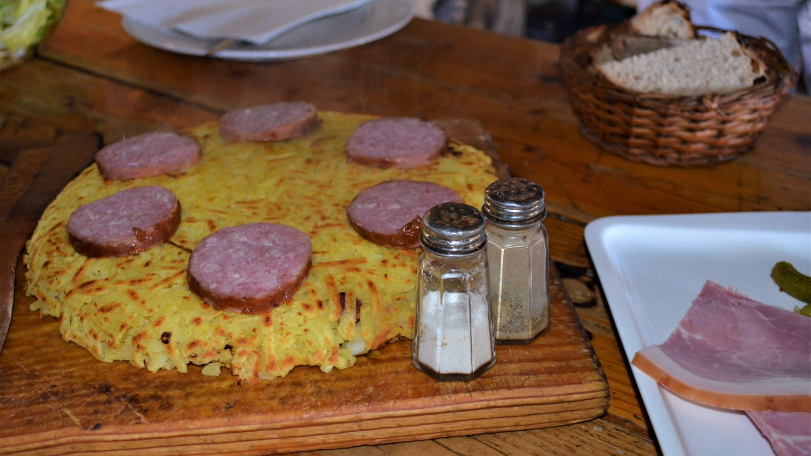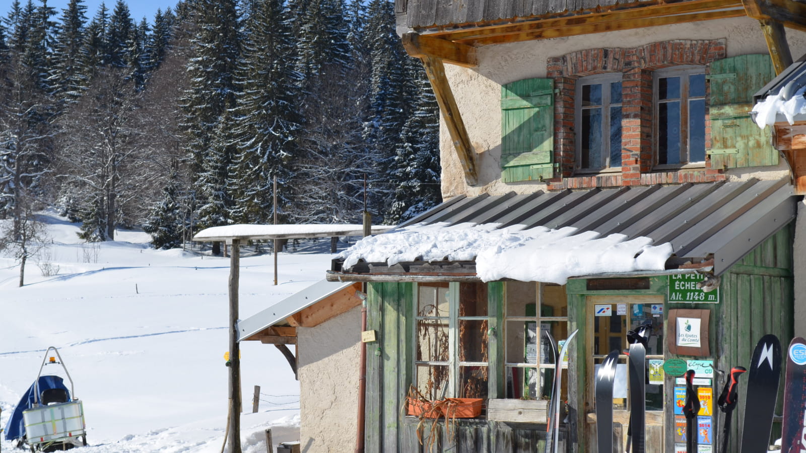 Van een ochtend skiën krijg je trek. We stoppen dan ook voor een lunch bij La Petite Echelle, een pittoreske alpenchalet met een café, restaurant en accommodaties in hartje Juragebergte, op steenworp afstand van de Zwitserse grens.