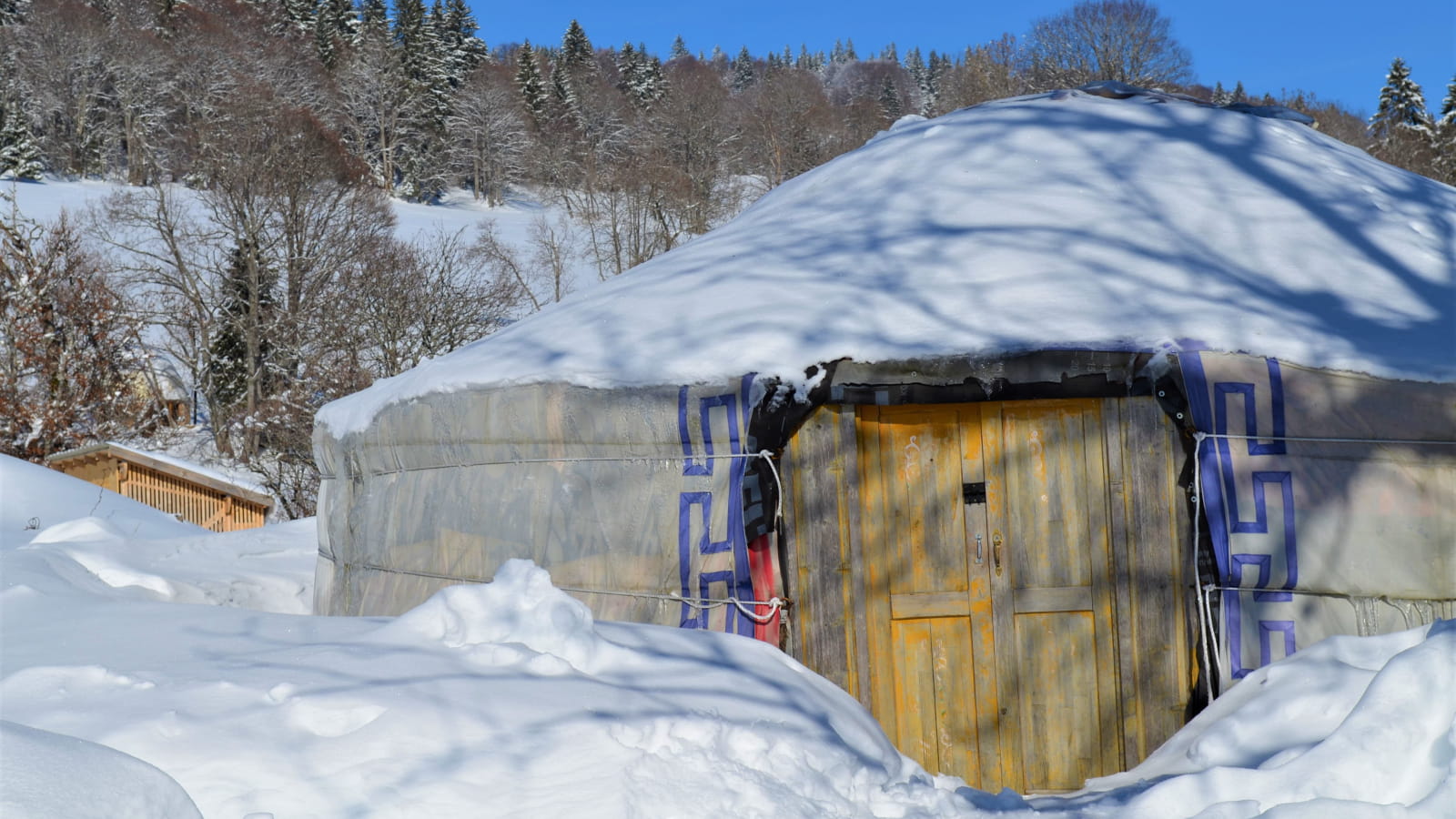 La Petite Echelle biedt ook originele accommodaties in een joert of hut. Je kunt er zowel 's zomers als 's winters overnachten. Maar voor ons is er geen ruimte voor een middagdutje: we trekken verder voor het uitzicht over de Mont-Blanc vanuit de heuvels van de Mont-d’Or.