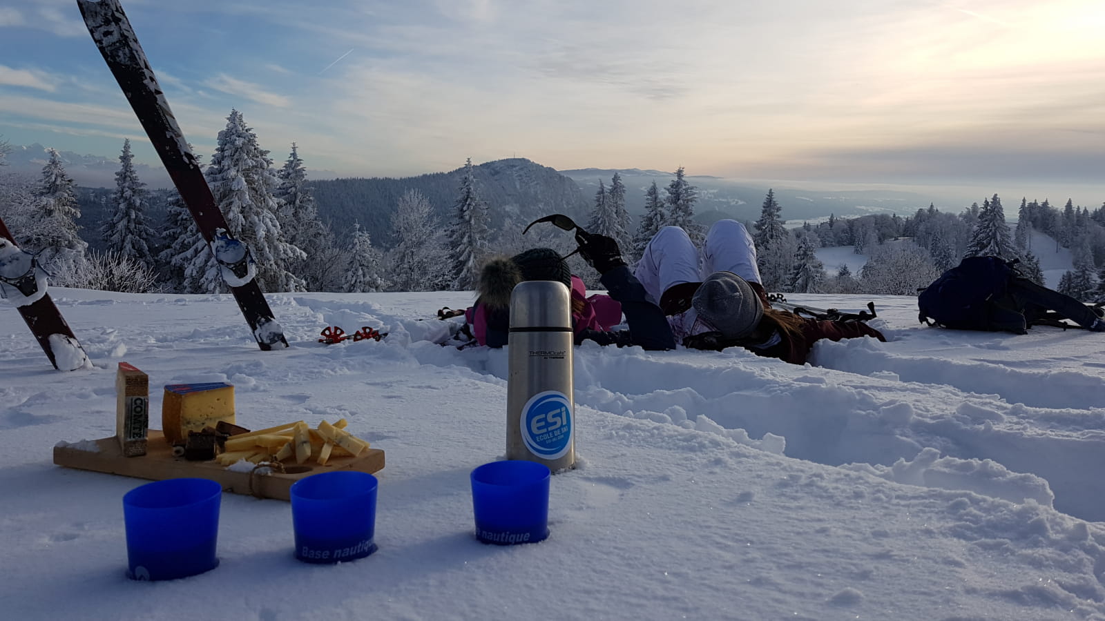 8.00 uur: op naar skioord Métabief met een schitterend zonnetje. Het belooft een mooie dag te worden! We maken ons klaar voor vertrek. We nemen de tijd om stabiel te staan maar vinden al snel ons evenwicht om op eigen tempo vooruit te komen. Eenmaal met je latten in de sneeuw hoef je alleen nog maar te genieten van het landschap. We hebben prachtige besneeuwde dalen ontdekt, een typisch landschap van het Juragebergte dat door erosie werd gevormd.